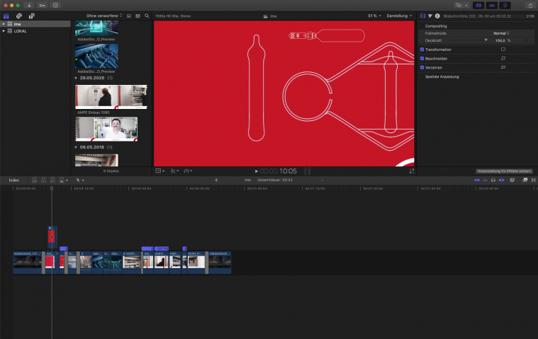Und so entstanden unter anderem in Zusammenarbeit mit unserem Kunden, wundervolle und selbsterklärende Produktvideos. Hierzu benutzten wir FinalCut als Videoschnittprogramm.