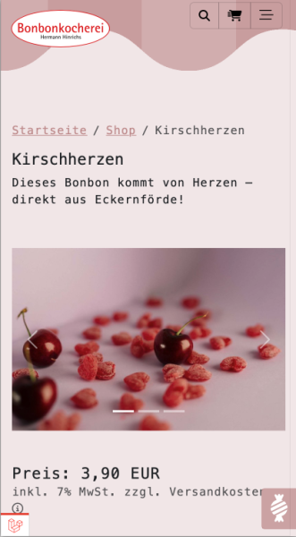 Der Webshop wurde bewusst als visuelle Verlängerung der Bonbonkocherei konzipiert. Hochwertige Produktfotografien zeigen jedes Bonbon in einer klaren Bilddramaturgie: pur, in der Schale und schließlich in der Verpackung. So entsteht ein handgemachter, authentischer Eindruck, der perfekt zur Marke Hermann Hinrichs passt.