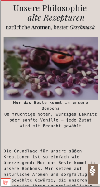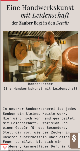 Ziel war es daher, die Website grundlegend neu zu denken und das besondere Erlebnis der Bonbonkocherei auch digital spürbar zu machen. Besonders wichtig war dabei die klare Orientierung für Touristen, Familien, Gruppen und Schulklassen, die häufig mobil und gezielt von weiter her anreisen.