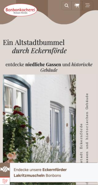 Die Website positioniert die Bonbonkocherei Hermann Hinrichs als festen Bestandteil eines Besuchs in Eckernförde und stärkt die digitale Sichtbarkeit regionaler Handwerks- und Tourismusangebote.