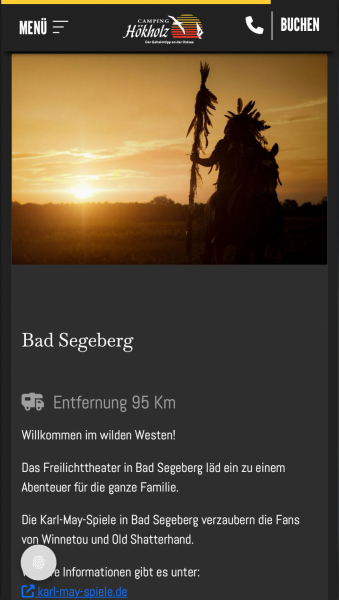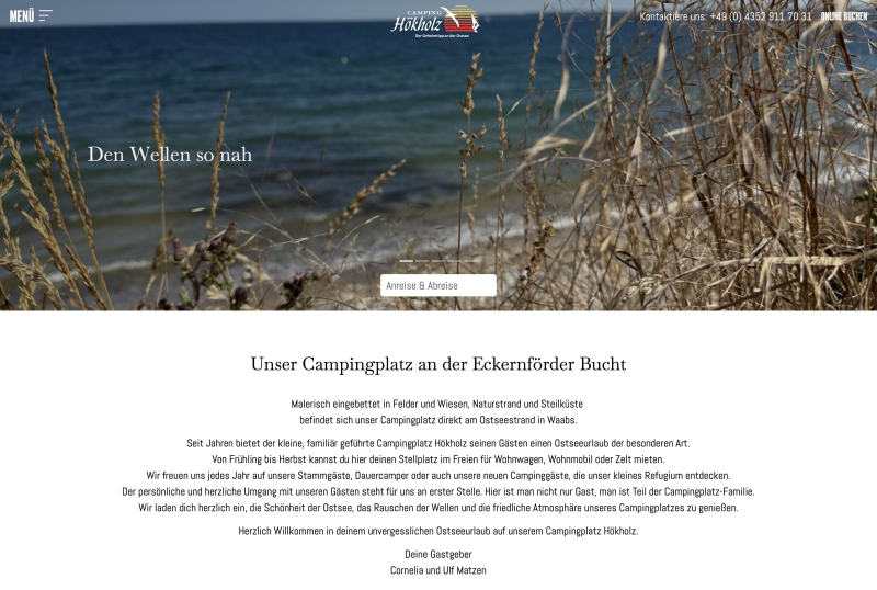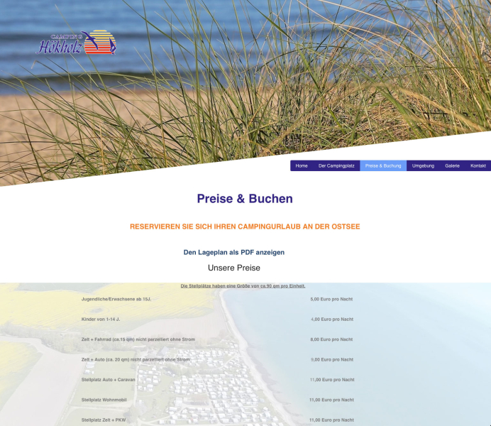 Der Campingplatz Hökholz verfügte im Vorfeld bereits über einen schlichten Internetauftritt, auf den Ansichten in mobilen Endgeräten konnte die Webseite jedoch nicht überzeugen. Dieser Bereich sollte durch einen Relaunch der Seite unbedingt optimiert werden, da viele Camper die Reservierungstools der Campingplätze während ihrer Reise auf den mobilen Endgeräten nutzen.